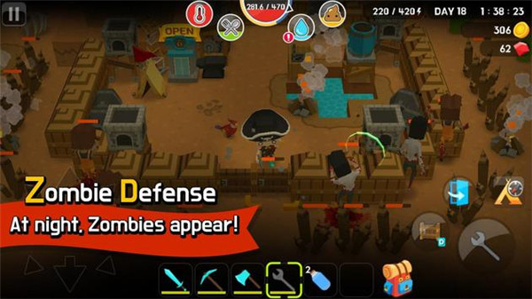 最新版本的游戏玩法主要围绕生存和探索展开。你需要收集材料制作工具,猎杀动物获取食物,还要建立一个安全的营地来保护自己。通过建造各种防御设施抵御僵尸入侵,让自己在末日世界中存活下来。
