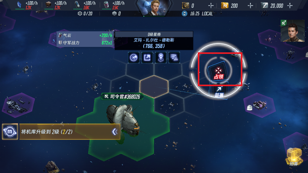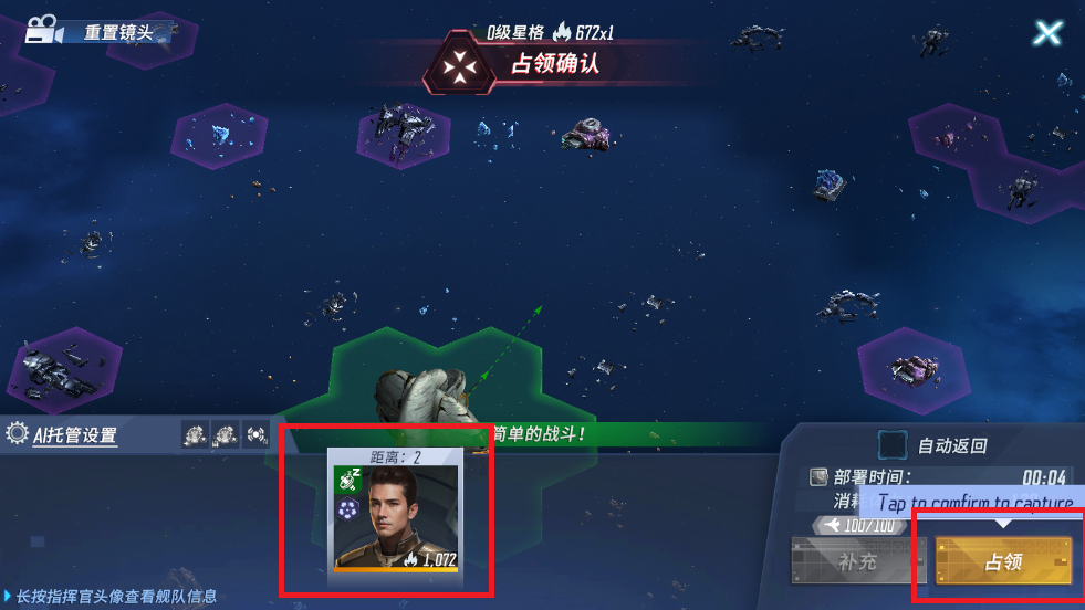 11、点击中间的方块选择占领,选择指挥官,开始占领。
