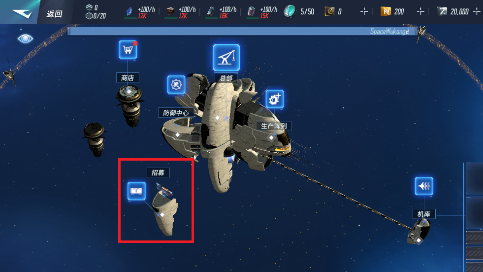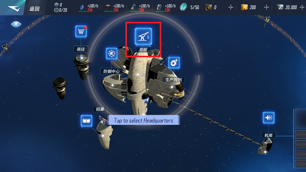 - 首先升级机库,之后可以自由选择其他建筑。消耗资源进行升级。