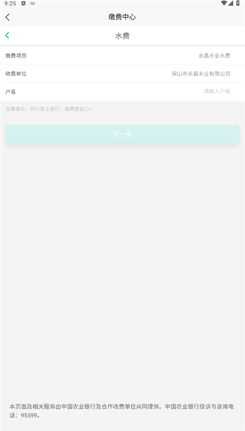 - 以水费为例,在输入框中填写您所在小区的水务公司名称。