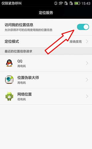 伪装定位开启现象,定位按钮点亮,同时通知栏有位置消息,屏幕侧边出现小地球的浮球!