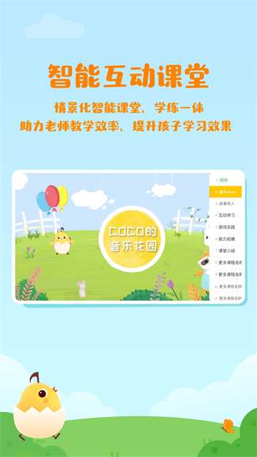 音乐壳教室App是一款为机构教学提供帮助的教学软件,配合音乐壳App的使用,专注为3-8岁孩子普及音乐素养。基于AI互动技术,该软件有着连接机构课堂和家庭练习的教学系统,教学涵盖了音乐启蒙、素养、乐器等全面的学习需求,
