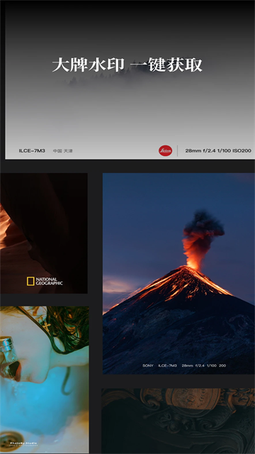 提供市面上所有品牌的水印,摄影师和摄影爱好者常用的水印,并且能够自动识别图片信息,批量添加水印,输出原画质照片。