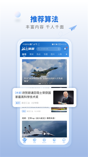 航空强国App是中国航空工业集团打造的媒体平台,致力于服务航空行业从业者及广大用户,提供权威、全面、深度的航空资讯。作为中国航空领域的主流舆论引擎,该应用聚焦国内外航空热点,涵盖政策法规、技术革新、重大项目进展等多个维度,助力新时代航空强国战略实施。航空强国App界面设计简洁,操作便捷,内容版块丰富,包括新闻报道、图文专栏、专家解读、视频直播等,不仅满足专业用户的信息获取需求,也为普通用户提供深入浅出的航空科普内容。