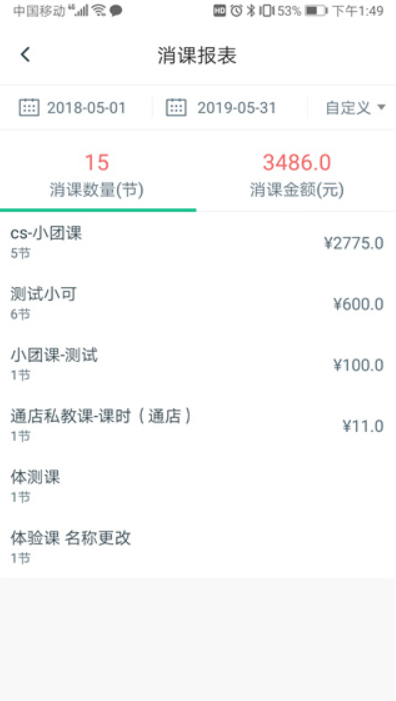 4、消课报表可以查看消课数量和消课金额