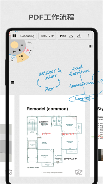概念画板国际版是一款专业的绘图设计类的手机办公软件,是设计师们手机上的办公软件,软件界面简单,绘画功能强大,可以很好地满足用户的绘画设计的需求,有了这款软件,用户就可以随时随地的记录绘图灵感,可以随时随地的进行设计。该软件能够为用户提供一体化的绘画工具,为用户提供包括移动、整理以及按工具、颜色、笔宽、平滑度和缩放编辑所画的内容的功能,在这里您可以进行灵活的画图,可以自定义画布、工具等绘画操作,还可以将图片拖至画布进行临摹操作;此外,软件还支持导出图片、PDF和矢量图,方便用户可以更好的办公绘画,是一款非常不错的手机绘图软件。