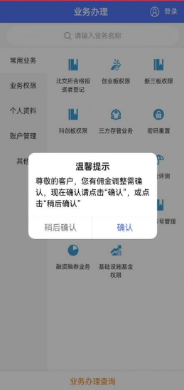 佣金确认当日如有交易记录,确认后下一交易日自动生效。