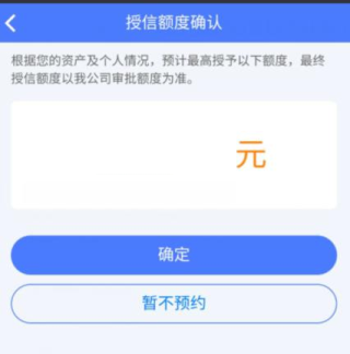 7、点确定后,预约信息提交至总部审核,审核通过后会有短信通知,最终的授予额度可通过掌厅查看