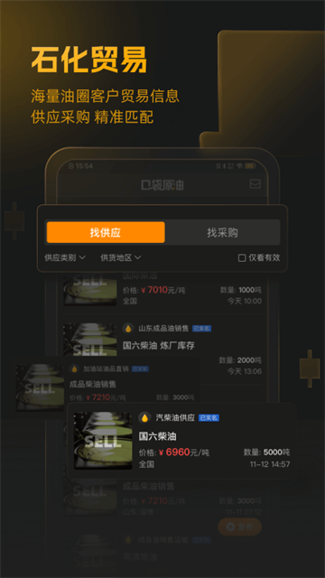 提供汽油柴油等油品贸易撮合服务,帮助用户更快地寻找合适的贸易伙伴,促进交易顺利进行。