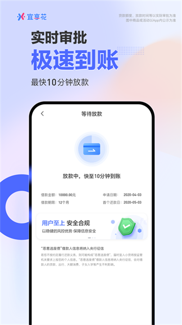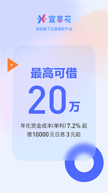 宜享花app是一款高额度、低息费、无抵押的信用贷款软件,通过融合运用人工智能、云计算等前沿科技,建立了灵活高效的信用评估及管理体系,实现了实时计算、秒级响应的全自动化审批,从注册、申请到提款的全程,用户均可在线上完成,是一个非常可靠的在线贷款平台,借款操作方便快捷,只需一键登记身份信息就能贷到款,贷款速度快,快速到达账户。而且这款平台的使用门槛很低,最重要的是利率低,无抵押,最高的贷款额度高达20万,循环金额更灵活,只需要简单三步就可以申请,实力雄厚无需任何担心,还有专业团队为你保驾护航,不断提升你的信用额度能贷到更多哦。支持12期分期还款,让你还款时毫无压力!