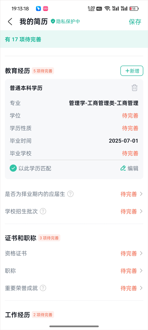 如果你想修改专业信息,操作也很简单:进入个人中心,找到教育经历页面,点击学历选项,搜索并选择新专业就能完成修改。App界面设计得很直观,新手也能轻松上手。