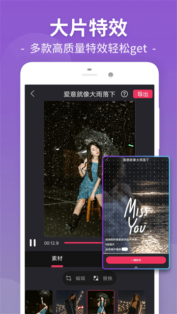 - 相册MV、AE模板、精美滤镜、字幕、视频涂鸦、视频转场