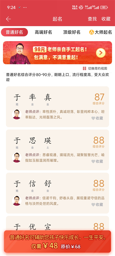 使用起来也挺方便,打开App填完宝宝信息就能开始取名了,还有不同级别的名字选择,从普通到顶级都有。我觉得这个App对新手爸妈来说特别实用,尤其是那些不太懂传统文化的父母,可以借助专业人士的力量给宝宝起个好听又有寓意的名字。