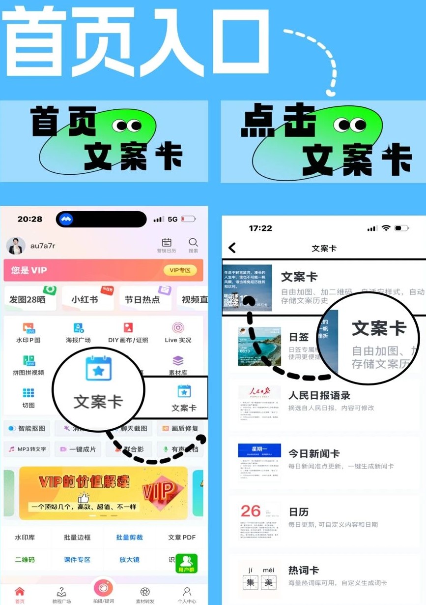 微脉水印相机的文案卡功能,也可以做朋友圈日签打卡海报!