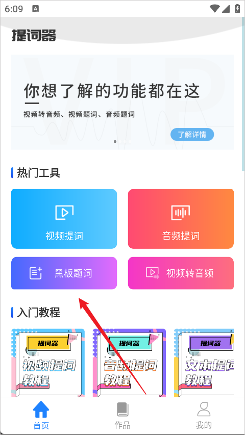 1、打开梦音提词器App,进入到App首页,点击“黑板题词”即可创建台词