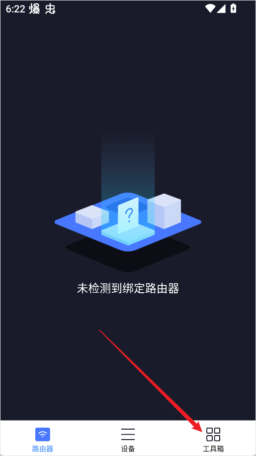 1、打开小米路由器App,点击底部菜单栏中的【工具箱】。