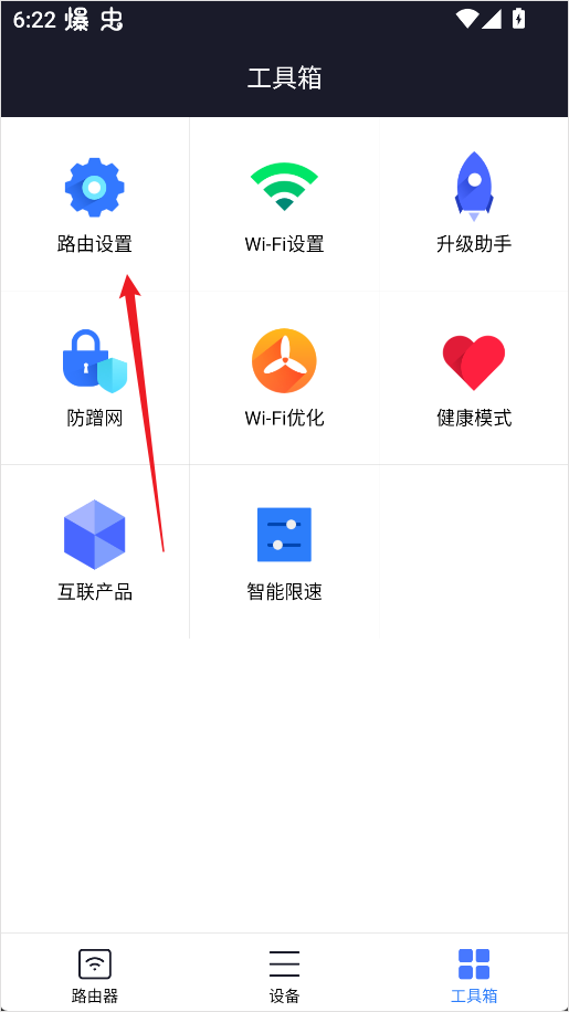 2、接着点击页面上方的【路由设置】,即可进入设备管理界面。