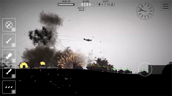 5、当被其他轰炸机击沉或是撞上地面时游戏结束,将根据游戏所获取的分数进行全球排名。