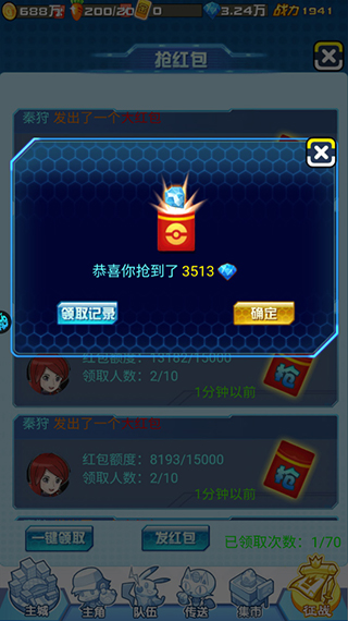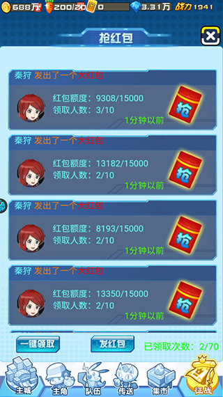 2、在游戏界面随机抢红包
