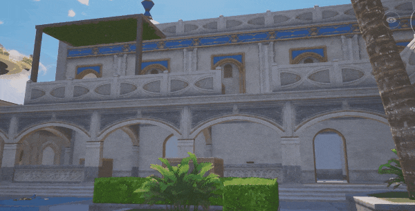 庭院分为内院与外院,外院摆放最强队伍雕像;内院则由二楼的建筑与地下沙漏空间组成。