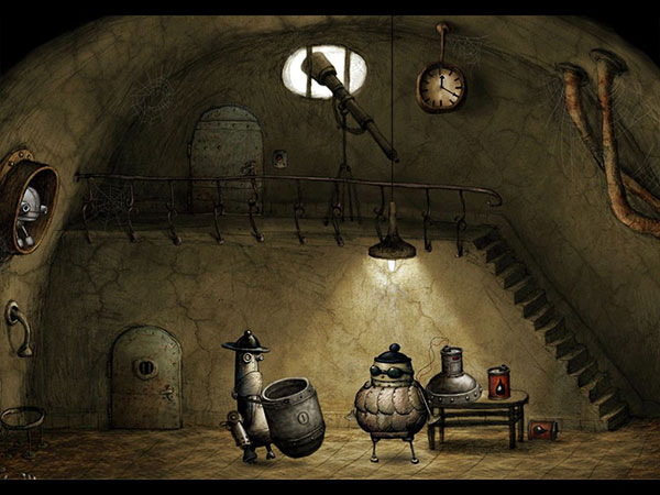 1、陈旧锈蚀却又格外亲切的城市游戏中的解谜要素在《Machinarium》中的机器人们看起来意外的老旧、锈蚀,却因手绘的关系而让人感到独特的亲切感。这个城市里看起来一片和谐,也充满惊奇。