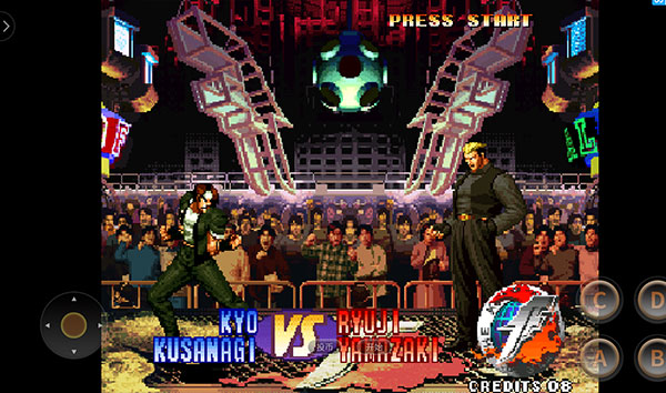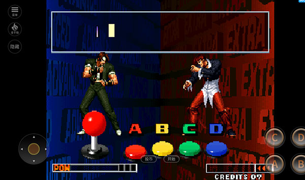 安卓拳皇97风云再起除了完全再现街机版的4键操作方式外,也可以设置包含[紧急回避]和[吹飞攻击]专用按钮的6键模式或者一键即可使出必杀技的sp按钮。