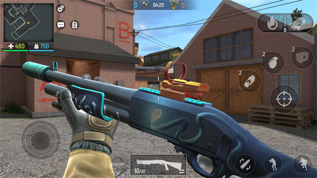 左侧遥感,右侧射击,瞄准、换弹、投雷、武器更换等一系列功能及操作中规中矩,适合绝大多数人的习惯,在一局有限的时间限定条件下,尽可能的击杀敌对势力获得积分,死后可以从基地复活,可与队友协同作战。