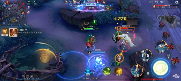 这里仗着装备经济优势拉扯一波美国队长,真不愧是美国队长,伤害还是很高的,吓我一跳,还以为没有还手的机会了,结果接完他的大招后二技能接一技能拉开距离继续输出,将美国队长拉扯,拿下人头。