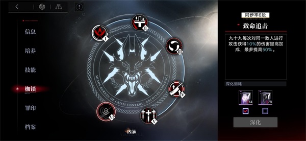 40级2阶之后,主要的提升手段就会变成升级技能和装备套装罪印,获取方式这里不再赘述。升级技能要挑着来,主要升级输出位的普攻和必杀,防御和辅助位的必杀的被动,其它的看情况,经常触发或收益高的也要升,用得少的,收益低的就不升。