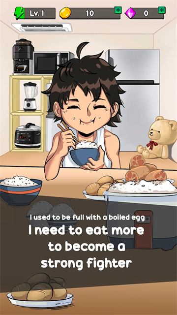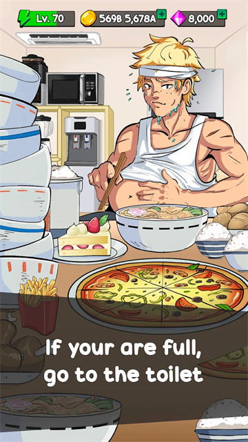 1、不断的去吃各种食物来增强您的能力,变成世界上知名的食物斗士