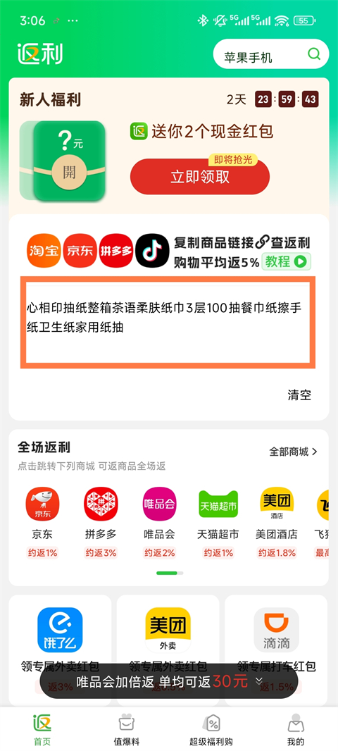 超级返,超级秒,精选品质大牌,每日千款上新,正品保障,买到超低价,更买到放心!