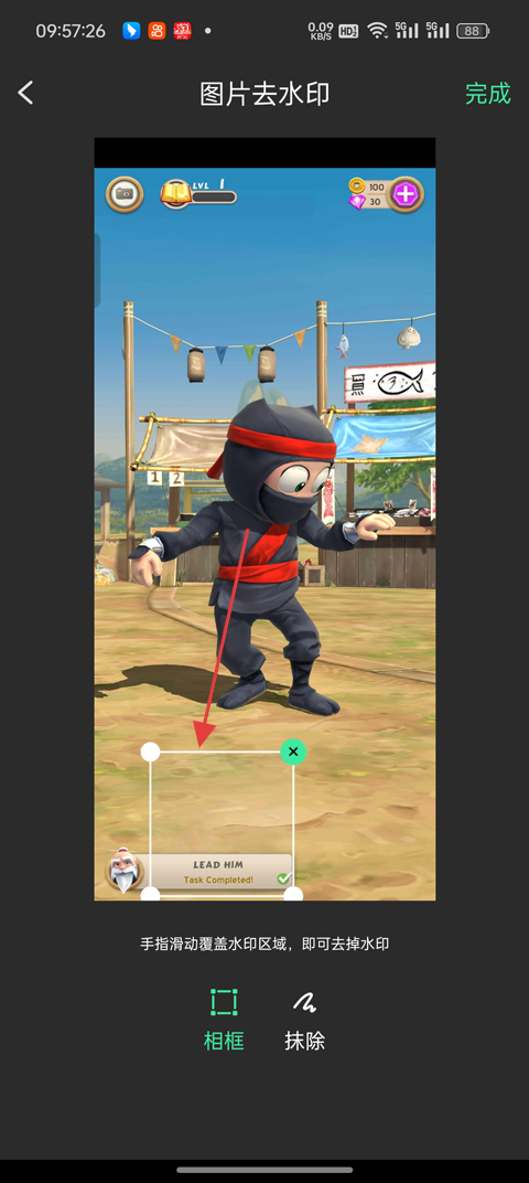 3、将框框选中你需要去水印的位置