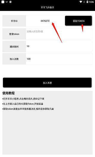 3、然后打开羊羊飞升助手,把你的ID号复制到上面,再点击获取TOKEN;