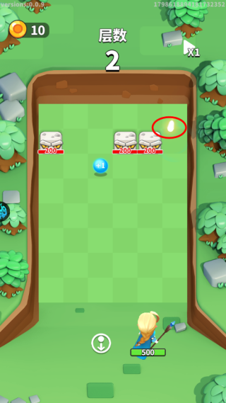 2、长按屏幕即可出现弹球路径,可直接瞄准石头怪,也可以根据地形进行多次弹射