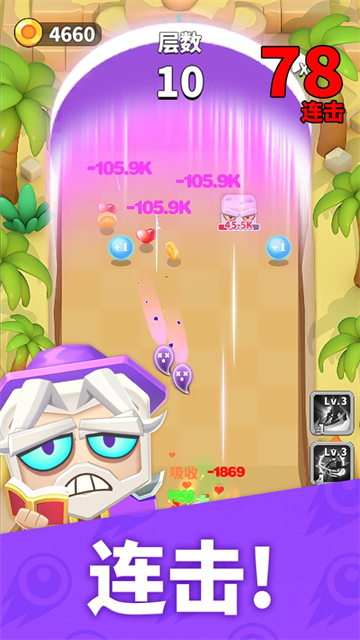 1、进入游戏,玩家将使用弹球击败场内的怪物