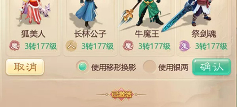 点击“调整阵容”,选择切换套装是每传功一次消耗1个“移形换影”还是300万银两。