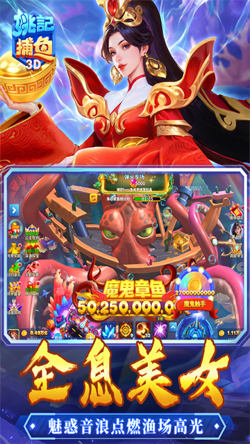 保留童年回忆的捕鱼结合各地神话再创新玩法,喷射龙龟、绝美人鱼、玉面白龙、魔神哪吒、烈焰领主、深海巨妖等你来挑战!