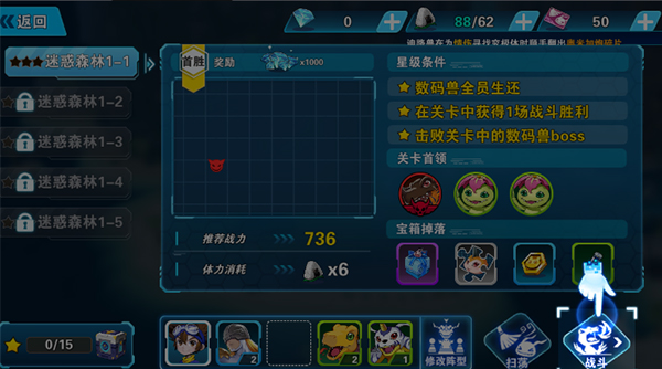 1、战斗开始前选择需要上阵的数码兽,然后挑战数码兽的站位,如前排、后排等