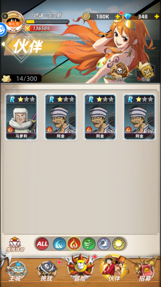 游戏基本还原了动漫航海王中的所有经典人物及剧情,玩家可以通过收集卡牌人物组建属于自己的航海小队,踏上成为海贼王的冒险之旅。