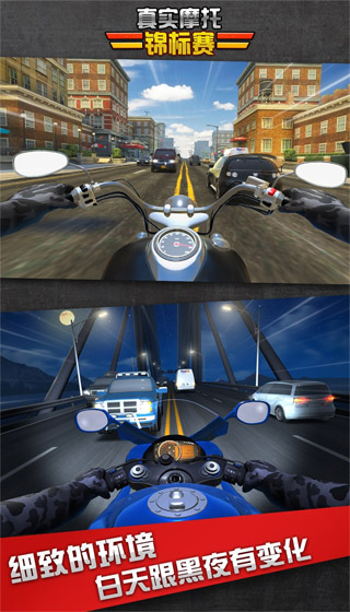 真实摩托锦标赛官方版是一款非常刺激好玩的3D摩托竞速类游戏,整体画面清新,界面精美写实,玩法简单容易上手。在游戏中玩家们将驾驶着自己的摩托在赛道上驰骋,在玩法上游戏为玩家们提供了职业、无尽、限时三种模式供玩家们自由选择,而玩家们则可以根据自己的爱好进行不同游戏的体验。除此之外游戏还提供了丰富炫酷的摩托车供玩家收集解锁,升级,当你的摩托车升级到一定的等级都九可以借助你犀利的架势与操作风驰于喧闹的街道中。怎么说呢这绝对是一款不可多得的摩托车竞速游戏,所以欢迎大家的免费下载。游戏特色