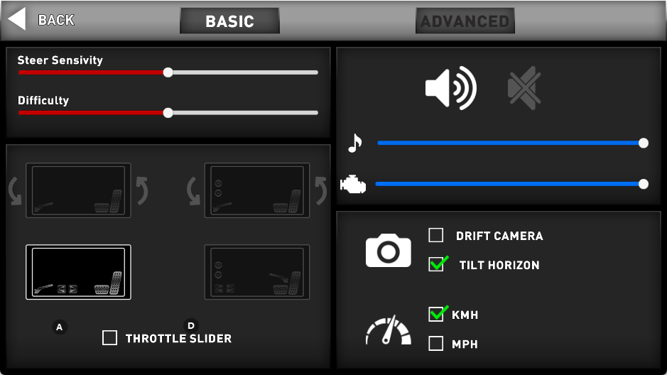 3、高阶玩家可设置、漂移辅助关闭以追求极限手感。