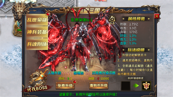 点击讨伐BOOS,全部通关后解锁《通关宝藏》每小时储存1次直购币翻倍次数