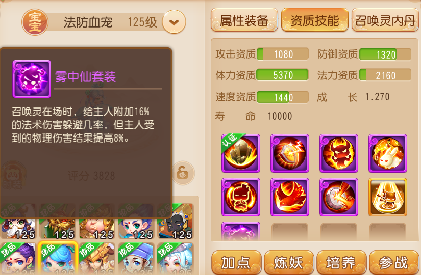 说起躲避,法防血宠“雾中仙”带来的法术躲避效果也同样出类拔萃。在面对以法系输出为主的对手时,首发带一个雾中仙将是极佳的选择。