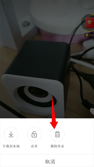 5、在底部弹出的操作选项中,点击删除作品。