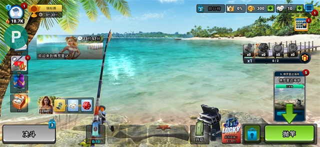《钓鱼冲突》就是这么一款高品质的“云钓鱼”游戏。波光粼粼的水面、随风摇曳的椰子树、飞速驶过的汽艇、慵懒的沙滩美女…隔着屏幕,你甚至都能感受到游戏场景里迎面吹来的微风。