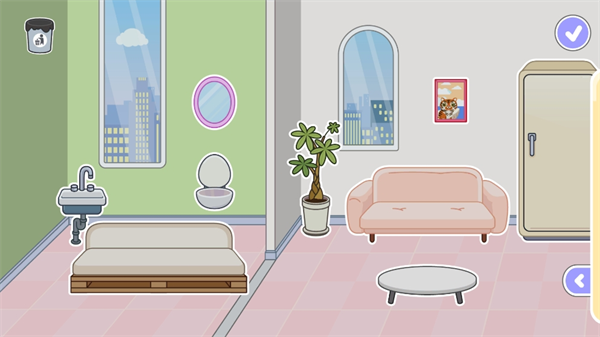 4、里面为用户提供了非常丰富的家居,如沙发、桌子、洗手台、床、浴缸等等,玩家可以自己选择你想要的家居;