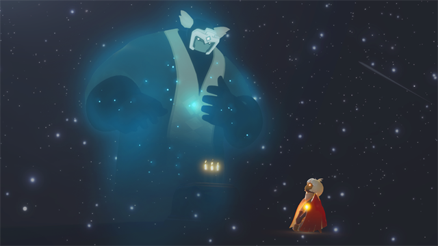 跟随恢复自由的遥鲲飞往顶层。顶层的星图将幻化作记录王国历史的画像,旅人们一路帮助的先祖重现眼前,并赋予了光之后裔最终的使命。