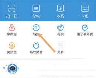 打开手机支付宝选择转帐图标,如果没有点右边更多查找;