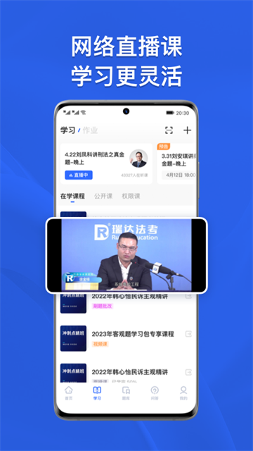 瑞达法考是一款专为法律考试打造的学习软件,功能挺全面的。里面不仅有直播课程,还有各种分类学习模块,像是刑法、民法这些重点科目都能找到专门的老师讲解。我觉得这对备考的同学来说特别有用,特别是可以随时提问解决不懂的地方。