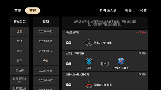 足球:欧冠、欧国联、意甲、法甲等欧洲足球联赛和杯赛,中超、足协杯、南美解放者杯等联赛